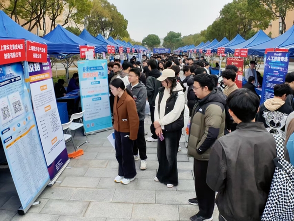 为深入贯彻落实高校毕业生高质量充分就业工作要求,抢抓春季招聘关键窗口期,精准搭建校企对接平台,助力工科学子实现优质就业,3月25日在电气学院楼前,电气学院在临港校区同步开展系列校企招聘与交流活动。当天上午,东方航空技术有限公司电气学院专场宣讲会顺利举办,院企双方深入洽谈合作事宜。下午,以“电亮梦想·气铸辉煌”为主题的上海电机学院2026年春季电气学院专场招聘会火热开启,全天活动紧凑高效、成果丰硕,切实为毕业生与用人单位搭建了双向选择的优质桥梁。