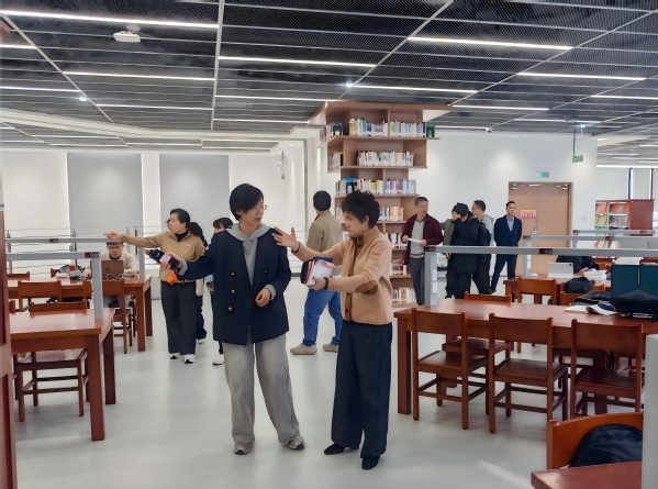 我校图书馆咨询服务部、信息技术部负责人分别分享了图书馆楼层功能定位、特色空间打造及资源建设采购等方面的实践经验。双方还就空间布局、家具设备采购、读者服务等具体问题进行了互动交流。