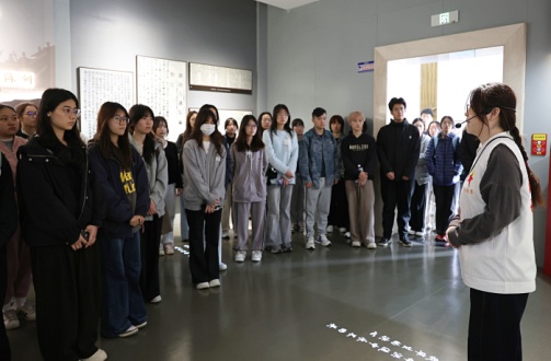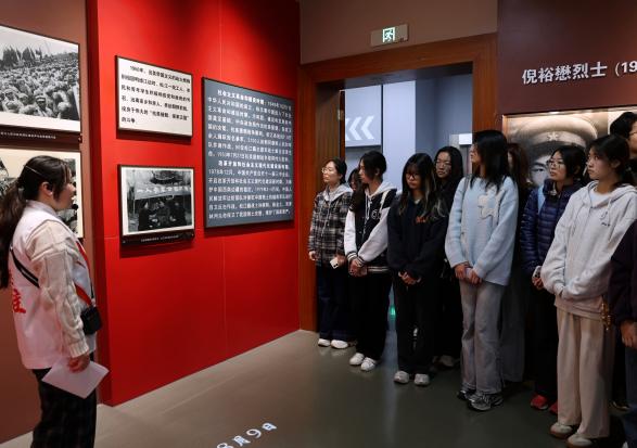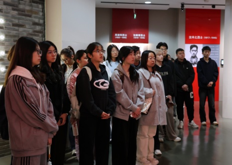 观影结束后,师生走进松江英烈纪念馆,馆内展陈了22位松江英烈的生平事迹,留存着大量珍贵的革命遗物、历史照片和文献资料。伴随着工作人员细致讲解,大家在展品前驻足凝视、轻声细读,在史料前凝神沉思、感悟初心。