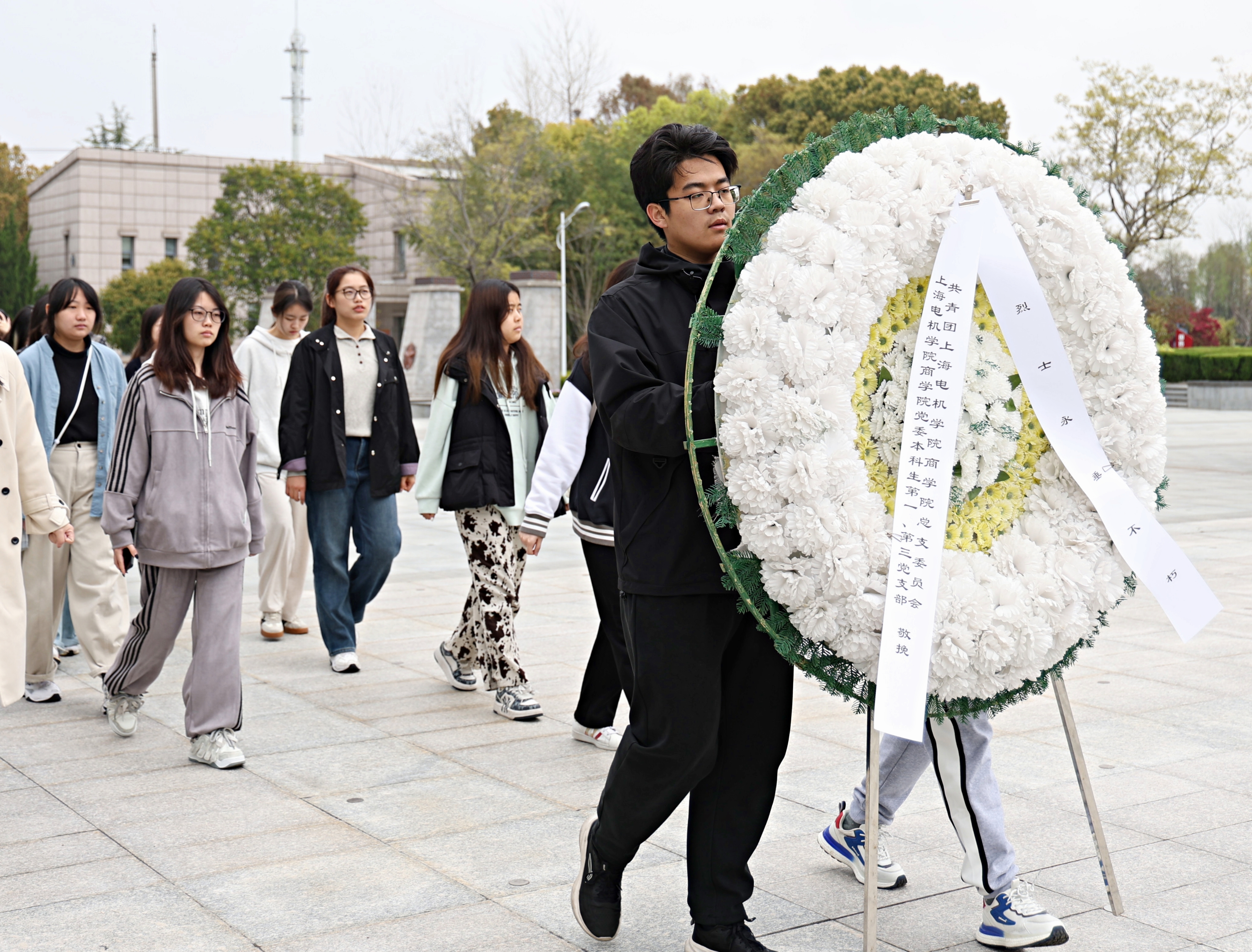 清明寄哀思,英烈照初心。为深切缅怀革命先烈、传承红色基因,引导青年学子厚植家国情怀、勇担时代使命,上海电机学院商学院党委本科生第一党支部、本科生第三党支部联合商学院团总支,组织40余名师生赴松江烈士陵园开展教育实践活动,以沉浸式学习追思英烈事迹,以赤诚之心传承革命精神。