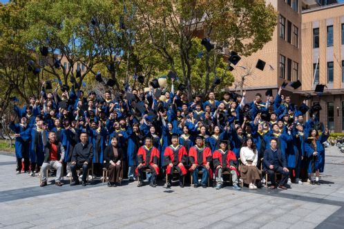 “一、二、三,电机人,加油!”在电气楼前,全体毕业生拍摄了专业集体照。学位帽高高抛向空中,笑声与欢呼声回荡在校园。