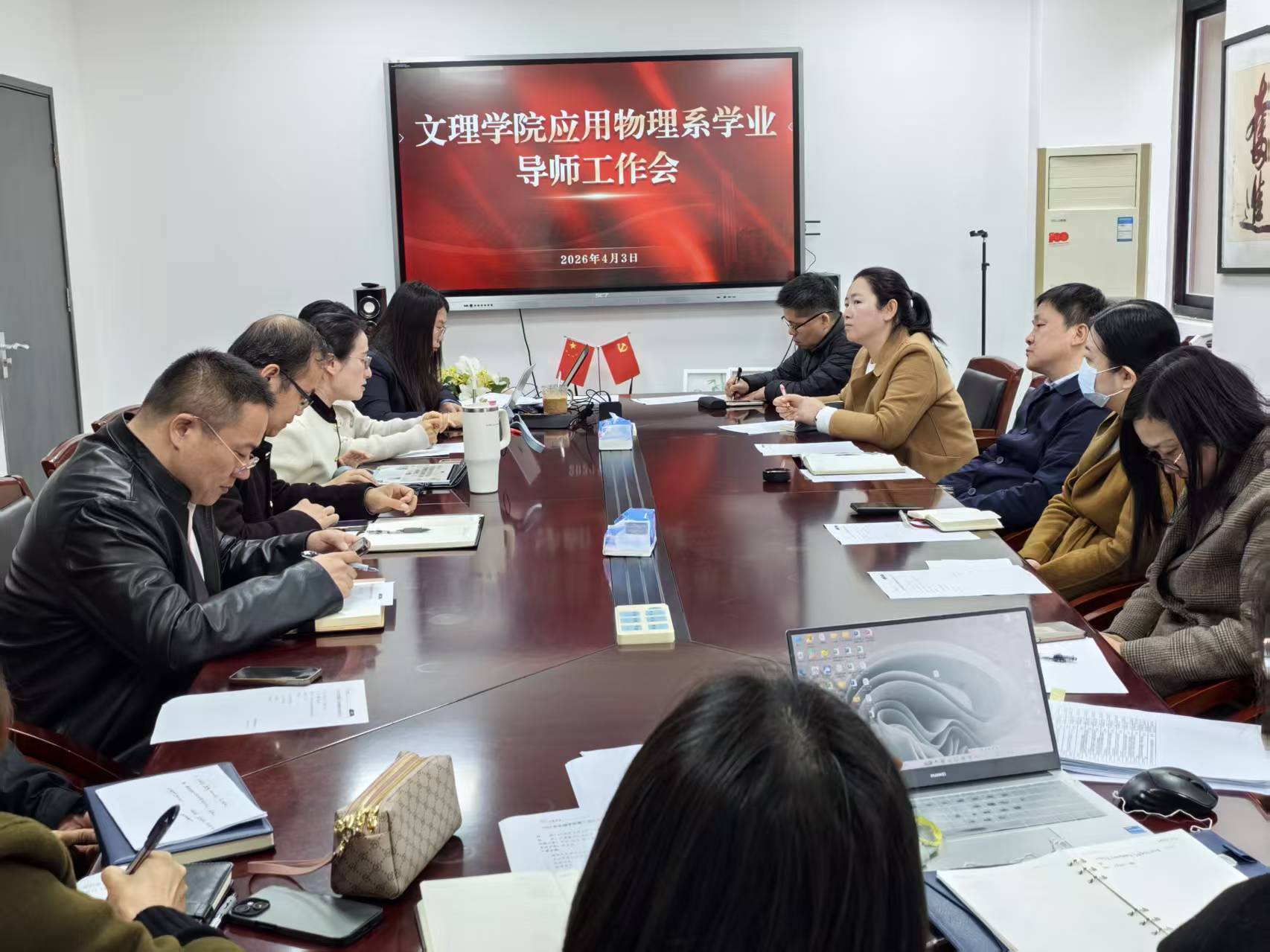 2026年4月3日—4月8日,文理学院相继召开学业导师工作推进会、学风建设领导小组会,深入研讨和推进学院学生学风建设和育人工作力度。党总支书记李志英、文理学院院长王相虎出席,文理学院全体学业导师、领导小组成员和辅导员参加。会议由文理学院副院长武文佳主持。