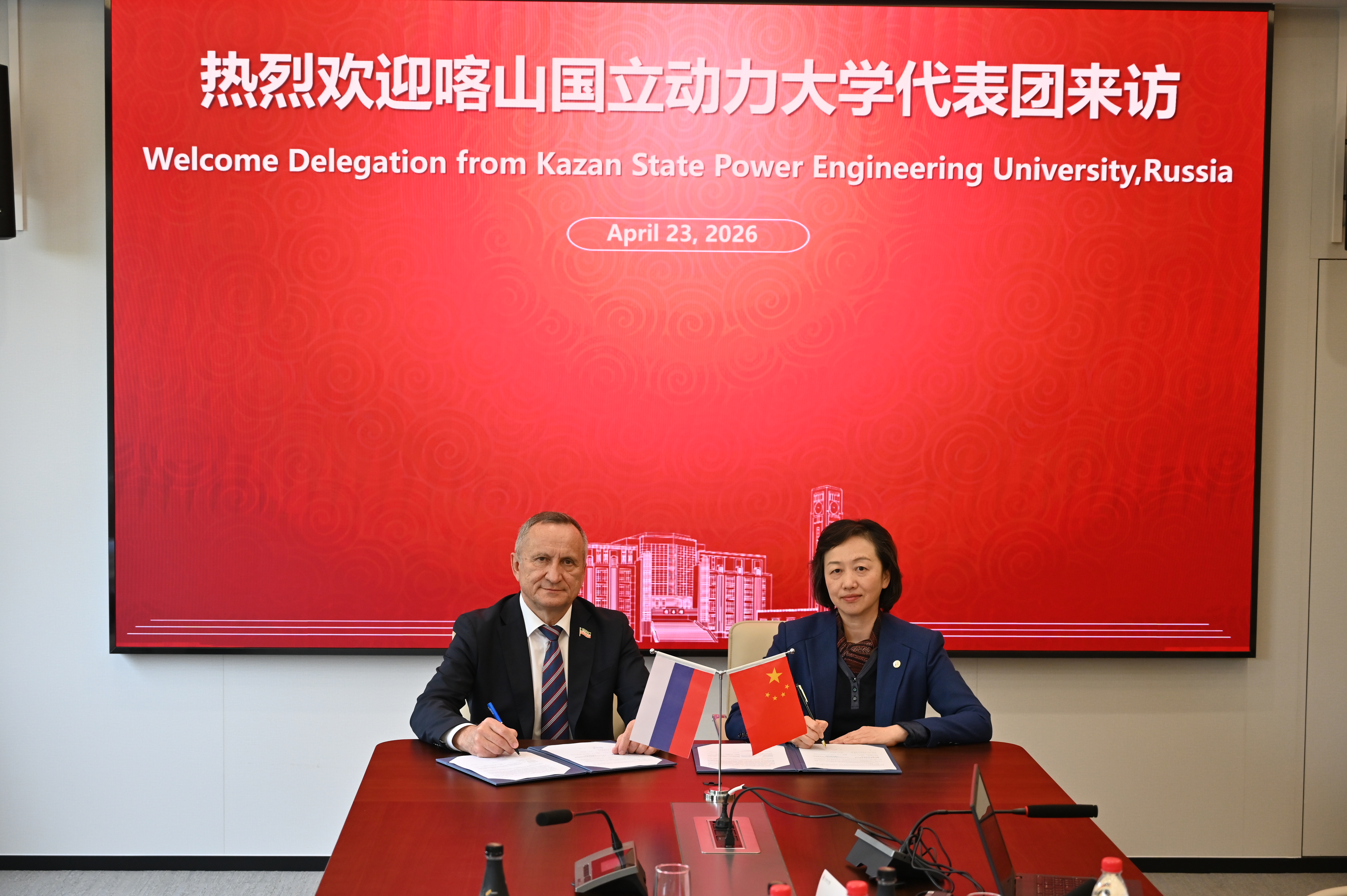 4月23日,俄罗斯喀山国立电力大学校长Abdullazyanov Edward Yunusovich率代表团一行来访我校,在国际交流中心202会议室举行友好会谈暨合作备忘录签署仪式。院长龚思怡教授、副院长王宏志教授,电气学院、电子信息工程学院及国际合作与交流处相关负责人出席会议。